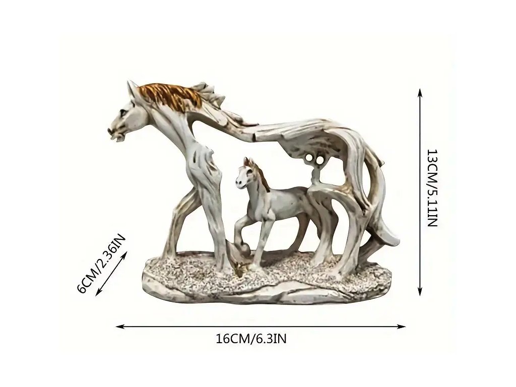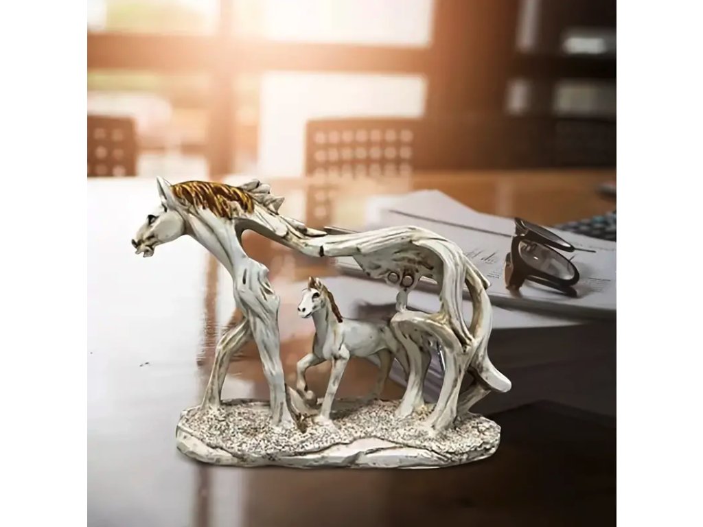 Obohaťte svůj interiér o nádhernou sošku klisny s hříbětem, která zachycuje něžný moment mezi matkou a jejím mládětem. Tato precizně vyrobená soška z kvalitního materiálu je skvělým symbolem mateřské lásky, síly a oddanosti. Jemné detaily v realistickém provedení dodávají této dekoraci výjimečný vzhled, který upoutá pozornost každého, kdo ji spatří.